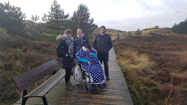 Einen Tagesausflug mit ihrem Sohn nach Amrum hat sich Frau H. gewünscht. Unsere Wunscherfüller Andre Bredemeier und Melanie Beiß holten die beiden in Begleitung von Krankenschwester Lisa-Marie Schirakow im UKSH in Kiel ab – lange vor Sonnenaufgang, um möglichst viel vom Tag zu haben.