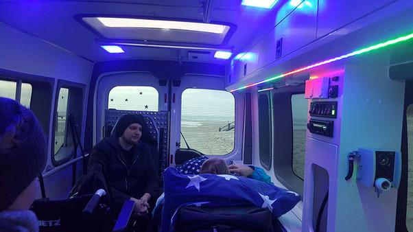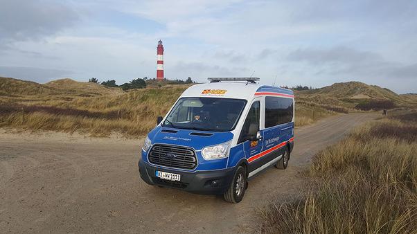 Auf der Rückfahrt mit der Fähre gab es noch einen Kaffee, wobei dem leuchtenden Amrumer Leuchtturm noch sehr lange nachdenklich hinterhergeguckt wurde, bis er in der Ferne und Dunkelheit verschwand. Zurück im Krankenhaus verabschiedeten wir einen sehr müden, aber glücklichen Fahrgast, erfüllt von vielen Eindrücken eines gelungenen Tages. Sie war immer noch ganz begeistert, dass diese Fahrt so kurzfristig realisiert werden konnte. Immerhin kam die Anfrage erst am Vortag bei uns an.“