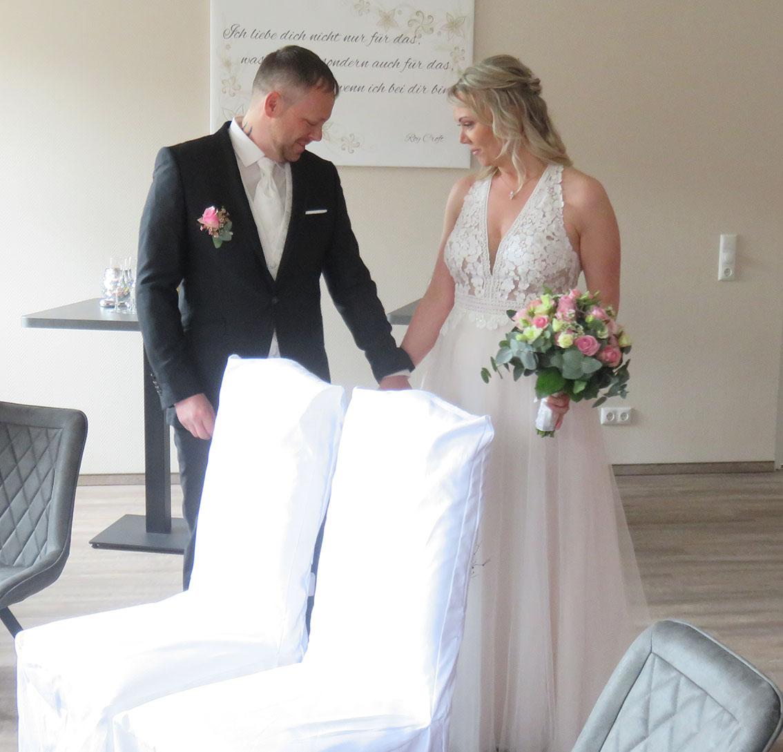 Der aufregendste Augenblick war für Frau N., als ihre einzige Tochter vom Brautvater dem Bräutigam übergeben wurde. Die Tränen liefen ihr herunter. Doch auch da wurde schnell die Lösung gefunden. Während der Trauung war der Enkel Milan ganz nah bei ihr und lenkte sie mit seinem lächelnden Gesicht ab.
